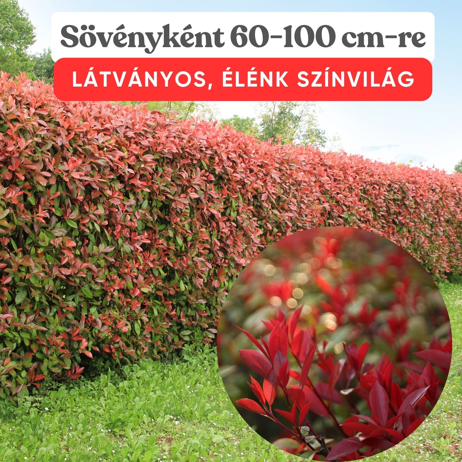 A Photinia × fraseri ‘Red Robin’ egy igazán különleges, örökzöld díszcserje, amely minden kertet elegánssá és vibrálóvá varázsol. Az egyik legnagyobb vonzereje a hajtásainak élénkpiros színe, amely tavasszal igazán intenzív. Ahogy érnek a levelek, mélyzöld árnyalatot öltenek, így a növény egész évben kontrasztos és dekoratív látványt nyújt. Ez a piros szín nemcsak tavasszal jelentkezik, hanem minden metszés után újra megjelenik. Rendszeres visszavágással a növény egész évben folyamatosan hozza élénk piros hajtásait.